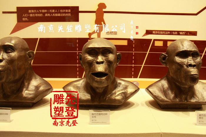 項目簡介:南京湯山直立人博物館,不銹鋼雕塑 ,直立人頭骨雕塑 猿人頭像演變系列 直立人五步進化曲