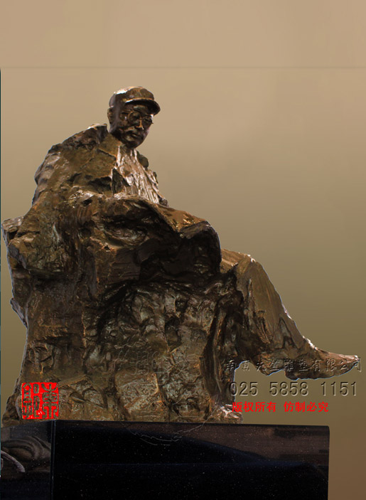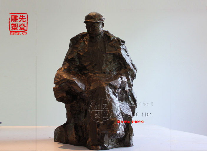 這是一尊寫意的雕像,遠(yuǎn)遠(yuǎn)望去,從輪廓大致便可以看出這是一座劉伯承先生的坐像。先生安詳?shù)刈帜靡环輬?bào)紙,在一天的伊始靜靜的讀著。他像一位為兒孫讀報(bào)的老人,如此安詳,慢慢地念著報(bào)紙的內(nèi)容,不時(shí)又有停頓,思索了一會(huì),閉上眼,靜靜的思考,然后又堅(jiān)定地點(diǎn)了點(diǎn)頭,仿佛已有所定斷。這也許不是一份普通的晨報(bào),也許是從資料室中搜索出來(lái)的解放南京前地下工作者在當(dāng)時(shí)緊急情況下做出的報(bào)告,經(jīng)過(guò)解放南京戰(zhàn)爭(zhēng)的洗禮,已經(jīng)有些皺了。這是個(gè)百?gòu)U待興的歷史時(shí)刻,南京市的蔣軍殘余還沒(méi)有肅清,城市還沒(méi)有安定,生產(chǎn)建設(shè)沒(méi)有恢復(fù),人們的生活沒(méi)有正常,作為新中國(guó)南京市第一任市長(zhǎng),劉伯承先生要做的還很多。